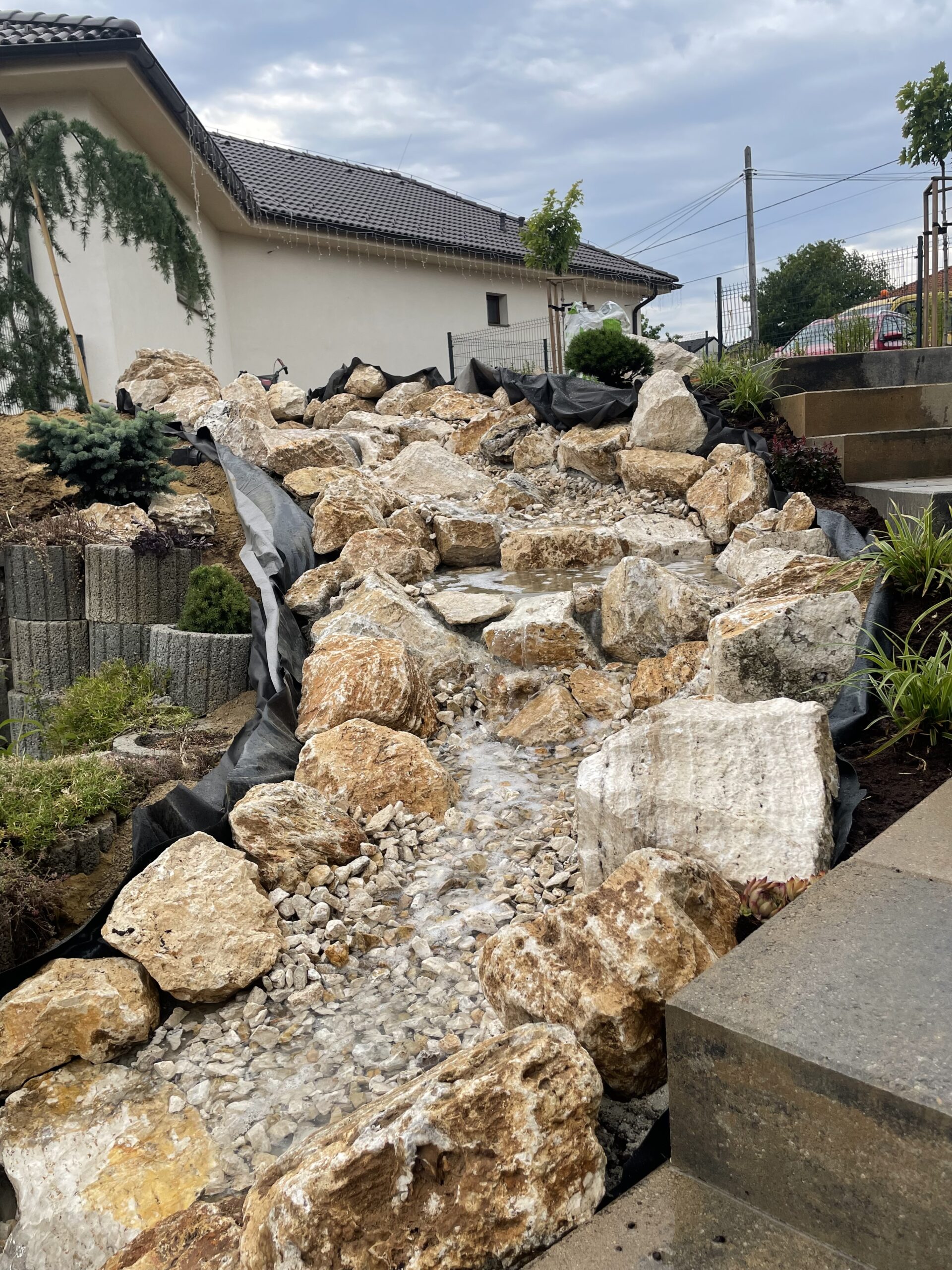 Realizácia záhrady na mieru: schody, potok, zavlažovanie a výsev trávnika